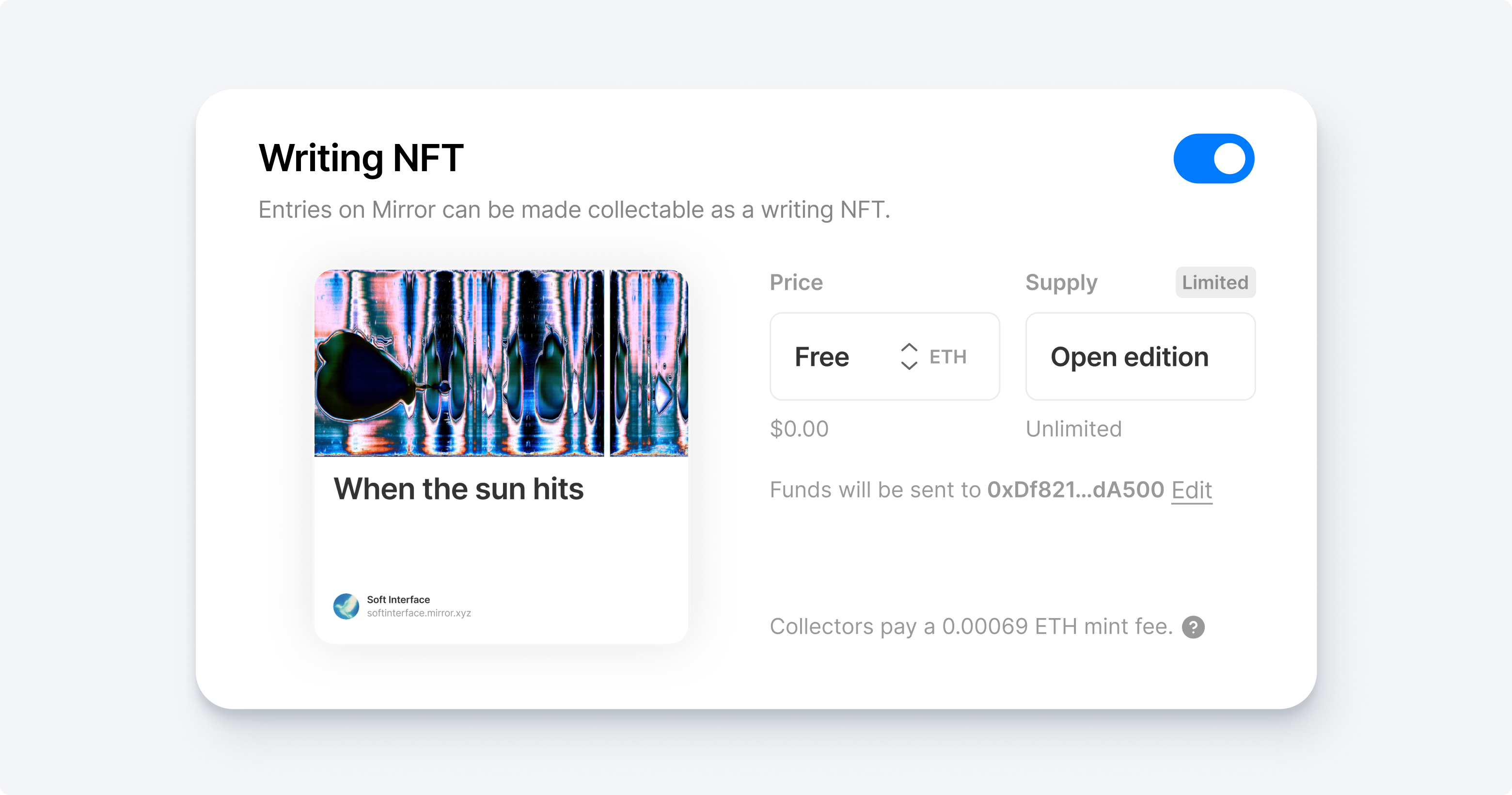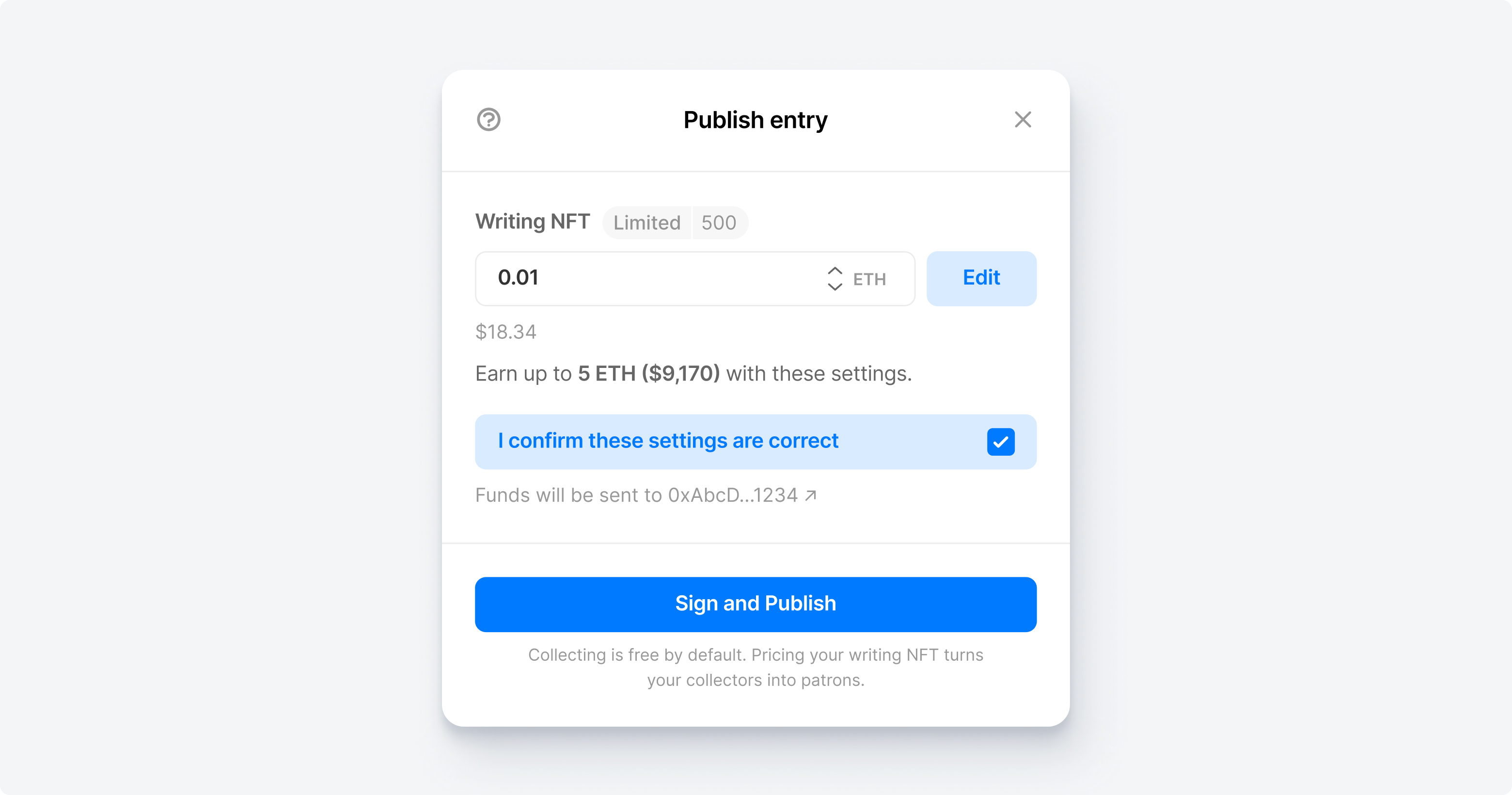 Mint your published entries as limited-edition NFTs with just a few clicks.